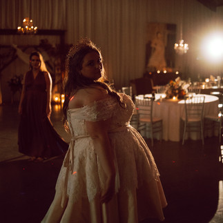 I decided to do the family portraits in front of the long dark hallway into the venue and it was the best decision I've ever made because it framed everyone magically. We were even able to include some photos with a photo of Ryan's dad, which was extra special. It was October and the skies were threatening with rain the entire day, so even through we had free reign on the property, things were a bit damp for exploring. Luckily every inch of the venue was photo perfect so we had plenty of versatile backgrounds during our wedding party photos.
